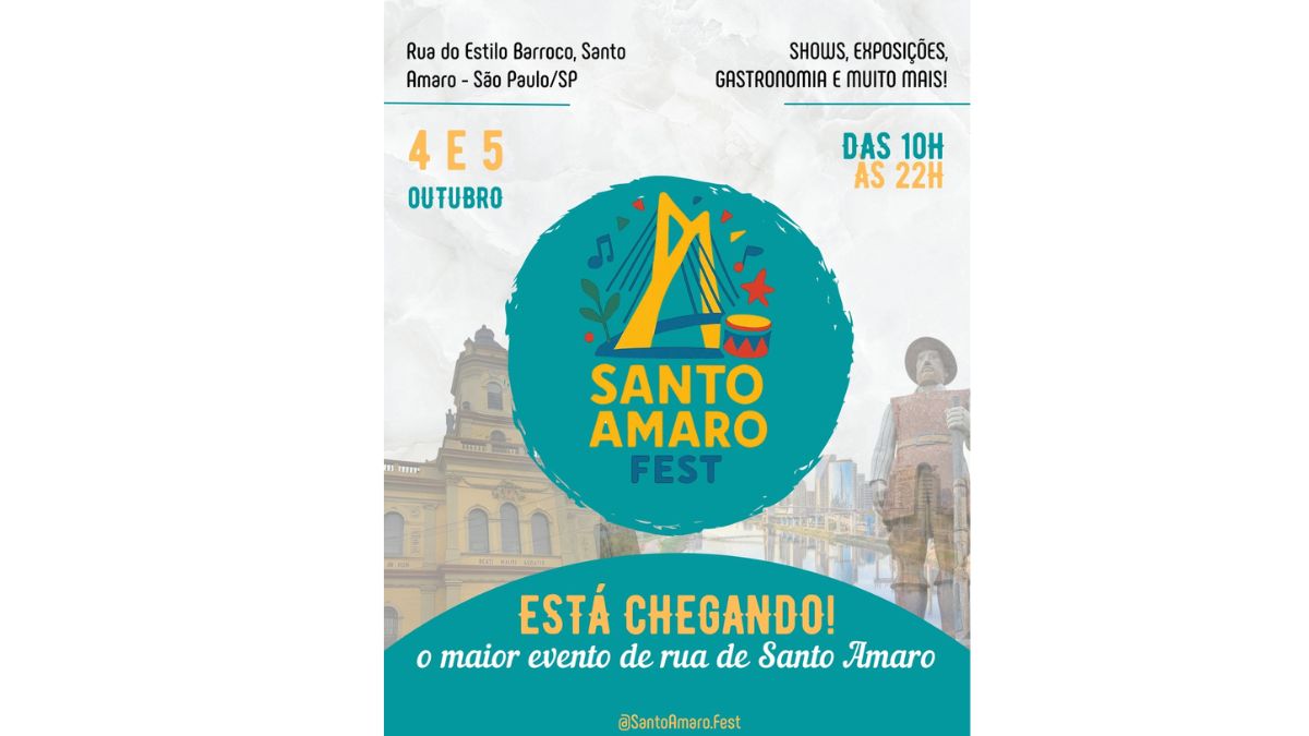 Com música, gastronomia, artesanato, exposições e atrações para todas as idades, o Santo Amaro Fest nasce com o propósito de se tornar o maior evento de rua da região — celebrando a história, o talento e a força da comunidade.